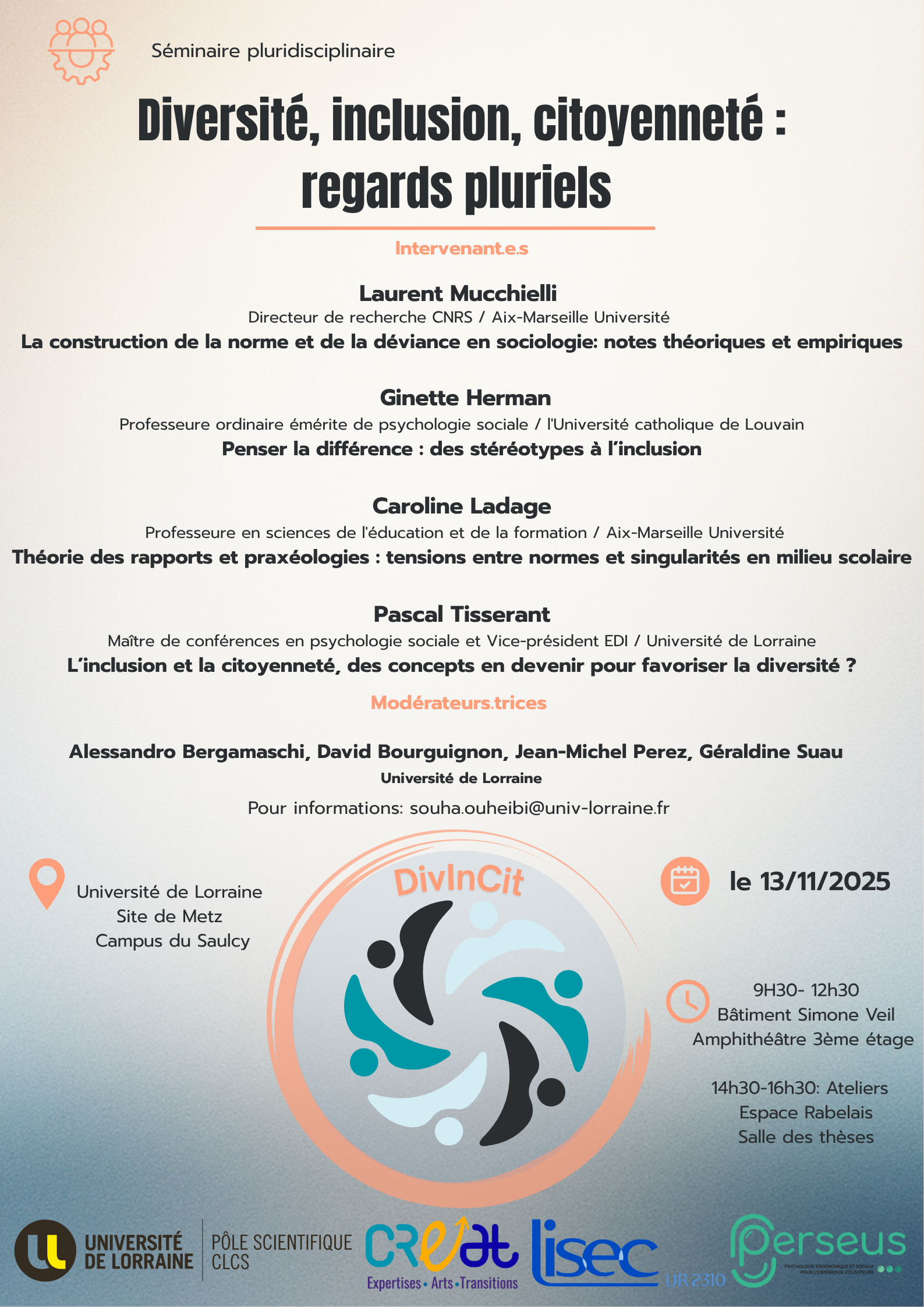 DivInCit organise son premier séminaire pluridisciplinaire à l’Université de Lorraine autour de la thématique suivante Diversité, inclusion, citoyenneté : regards pluriels.